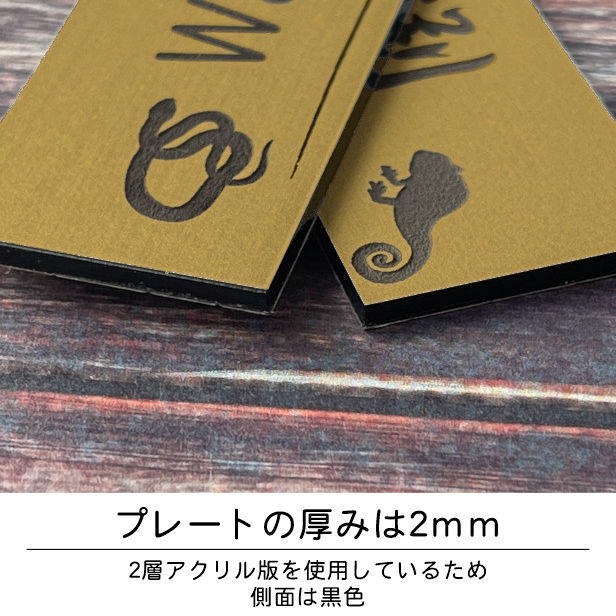 表札 ネームプレート 爬虫類 両生類 真鍮風 ゴールド 120×30 S カエル ヘビ トカゲ ヤモリ 亀 戸建 マンション 門柱 ポスト シール メール便送料無料