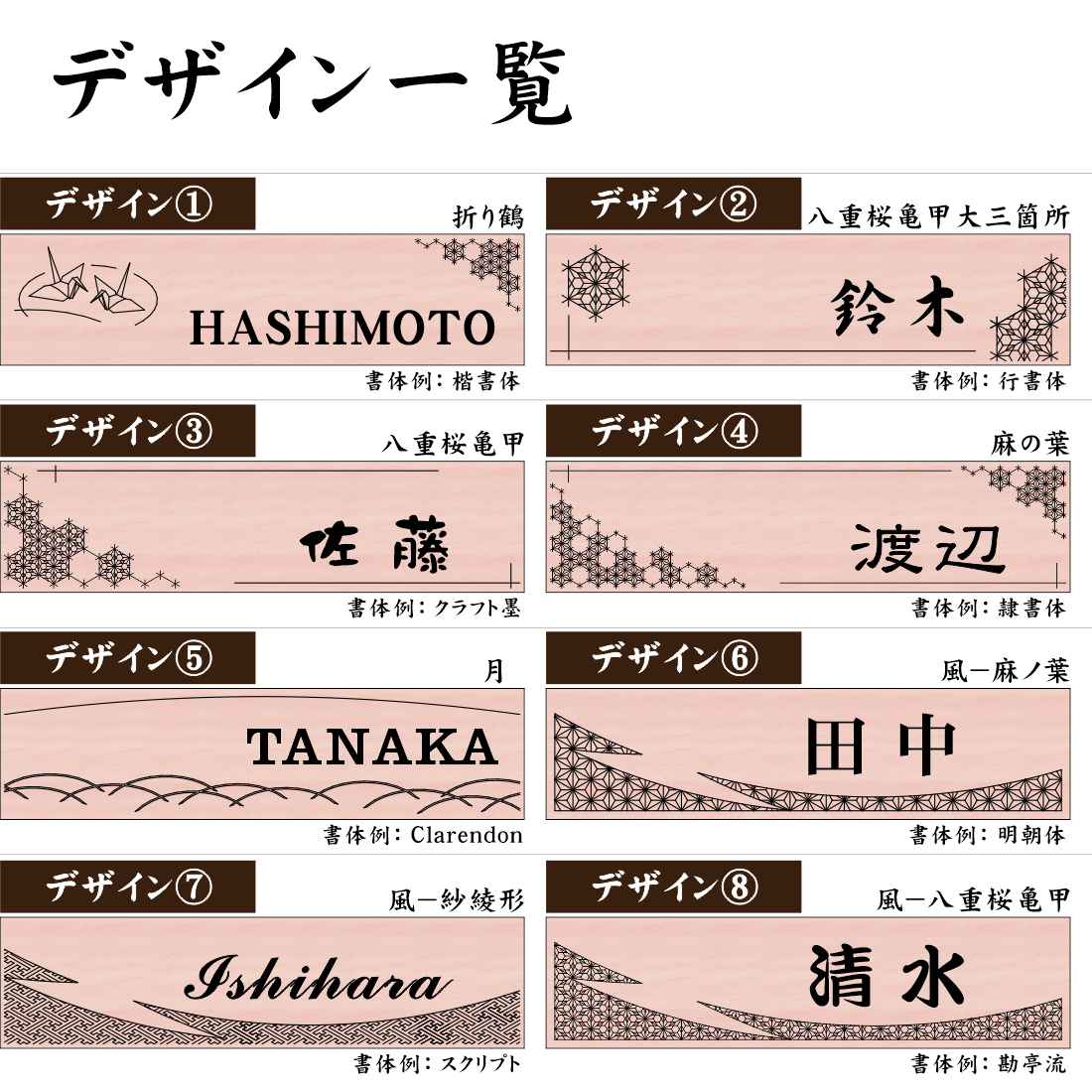【12書体,8デザインから選べる】 縁起の良い和柄文様を使った和風デザイン表札