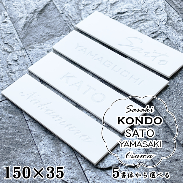 表札 白 モノトーン 目立たないけど映える 150×35 M 艶消し マットホワイト (名入れ無料 1行専用) シンプル 北欧 おしゃれ ポストにつけたりマンションの表札として 英文字ならどんな内容でもOK 刻印内容は自由 セラミック風 陶器のような質感 アクリル製 メール便送料無料