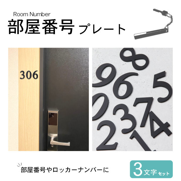 ルームナンバー 切文字 数字 部屋番号 (3文字セット) ブラック 番号 ナンバー サインプレート 番号プレート 表示 標識 屋外対応 簡単貼るだけ メール便送料無料