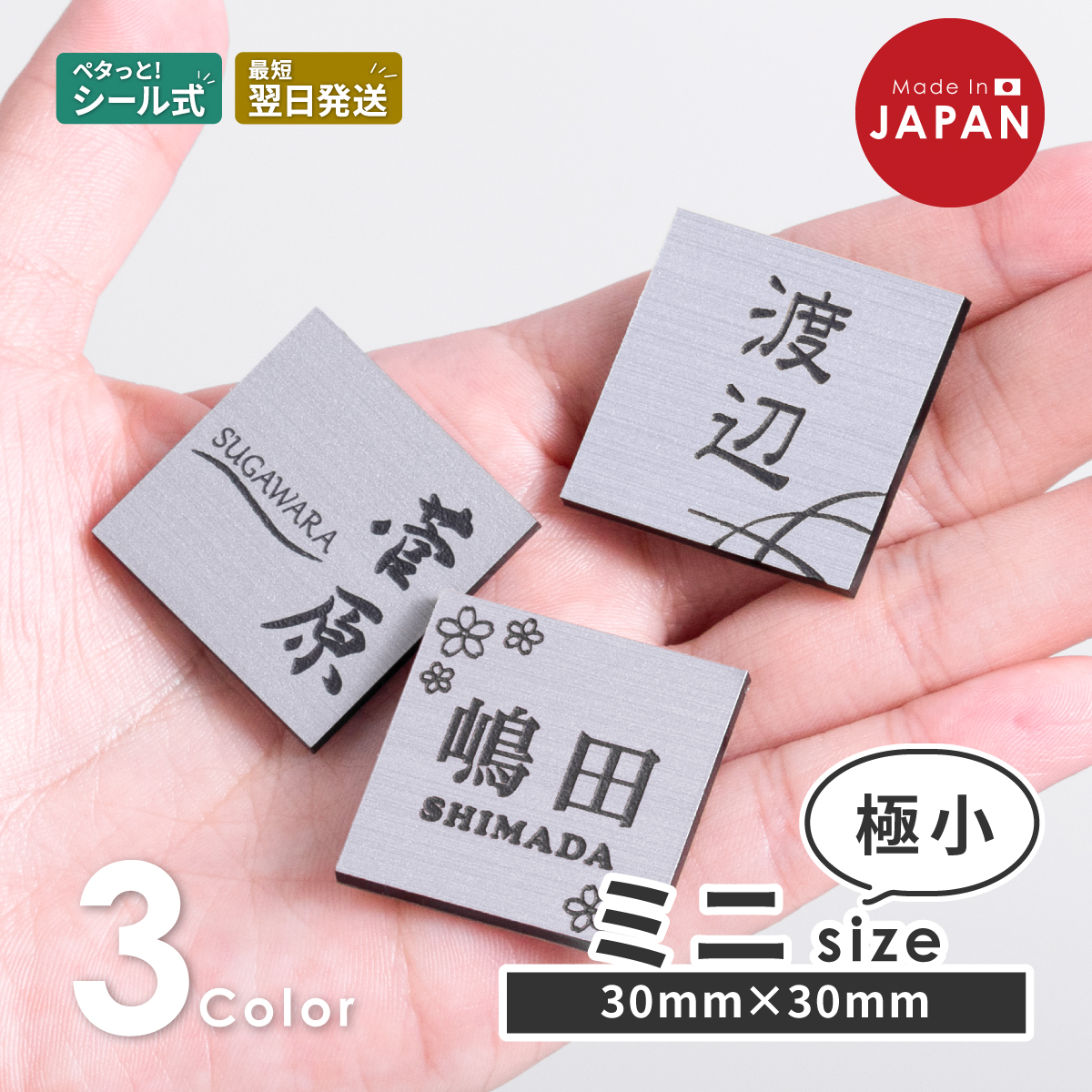 ミニ表札 ステンレス調 30mm×30mm シルバー 戸建やマンションに小さな表札 かわいいサイズでインターホンカバーやペット用キャリー、小物キャビネットなど 銀