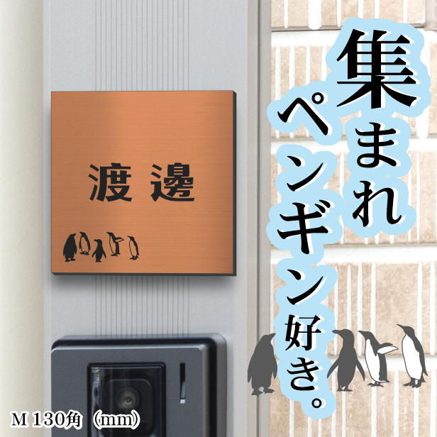 表札 ペンギン 銅板風 130角(mm) M ブロンズ 【名入れ無料】戸建 マンションの表札として ペンギン好き必見! コウテイペンギン イワトビペンギン エンペラー フンボルト 鳥 鳥類 表札 錆びずにいつまでもキレイなアクリル製 おしゃれな銅色 屋外対応 メール便送料無料