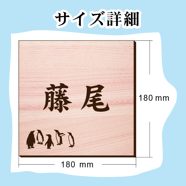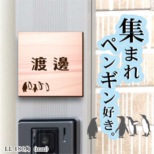 ペンギン表札 木目調 180角(mm) LL 名入れ無料 戸建 マンションの表札として ペンギン好き必見! コウテイペンギン イワトビペンギン エンペラー フンボルト 鳥 鳥類 表札 腐食せずにいつまでもキレイなアクリル製 おしゃれなフェイクウッド調 屋外対応 メール便送料無料
