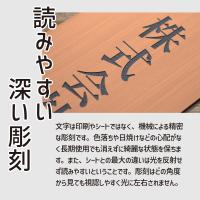 詳細:2層アクリル板(黒ベース、銅板風/ヘアライン仕上げ)へレーザー彫刻にて刻印しています。