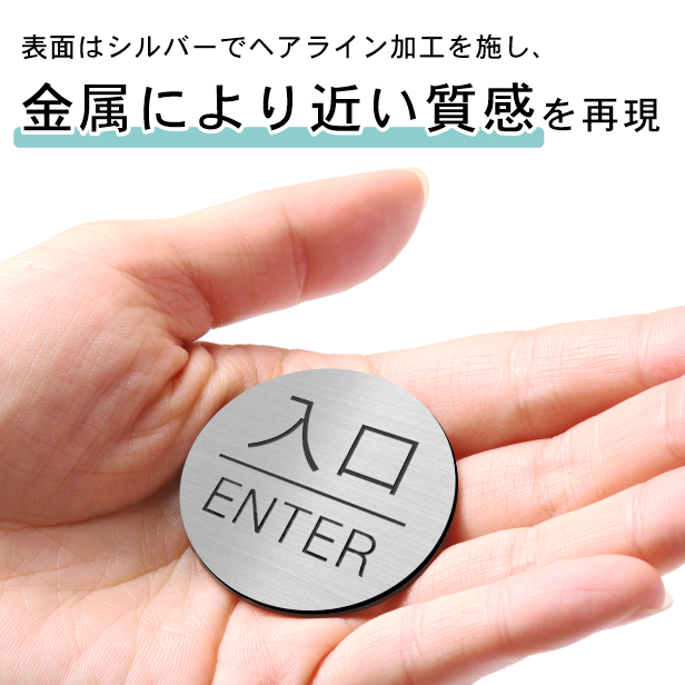 丸型 ステンレス調 シルバー サインプレート 扉 出入口 ドアサイン マーク ENTER EXIT Entrance シンプルでオシャレ 分かりやすいデザイン 銀色 屋外対応 簡単取付 シール式 メール便送料無料