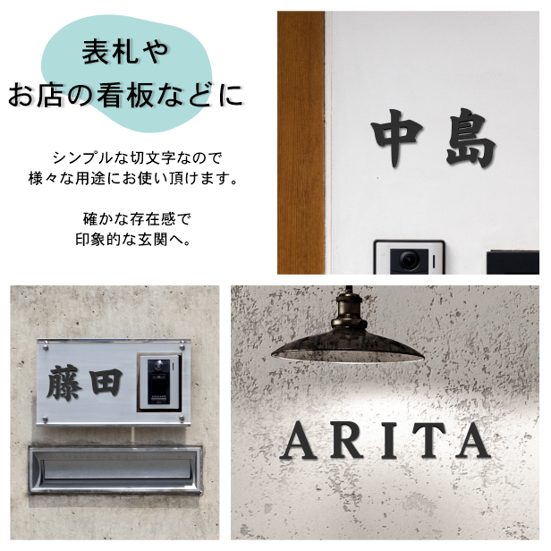 切り文字 表札 看板 5cm 漢字 ひらがな カタカナ 記号 英字 数字 (楷書体) ブラック 黒 切り抜き 立体サイン 屋外OK シール式 メール便送料無料