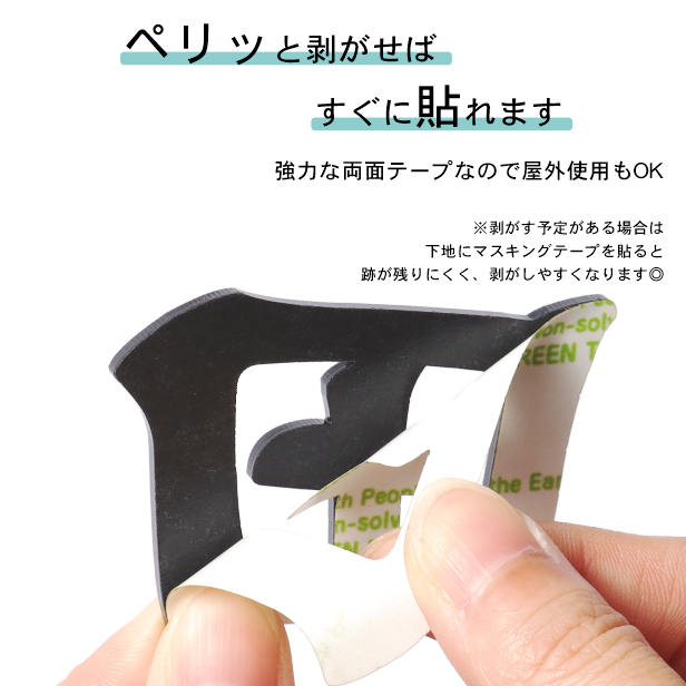 艶消しブラックのアクリル製切文字 ガイド枠とセットで簡単貼り付け!