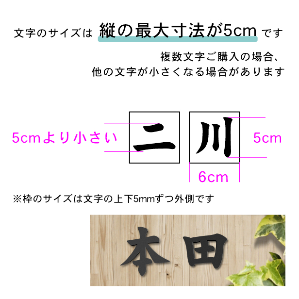 ※複数文字ご購入の場合、一番縦幅が大きいサイズが5cmになります。
