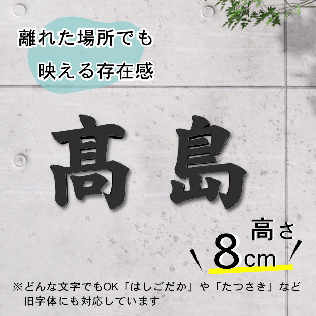 切り文字 表札 看板 8cm 漢字 ひらがな カタカナ 記号 英字 数字 (楷書体) ブラック 黒 切り抜き 立体サイン 屋外OK シール式 メール便送料無料
