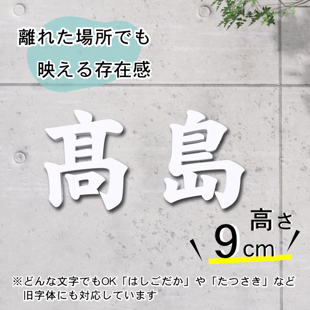 切り文字 表札 看板 9cm 漢字 ひらがな カタカナ 記号 英字 数字 (楷書体) ホワイト 白 切り抜き 立体サイン 屋外OK シール式 メール便送料無料