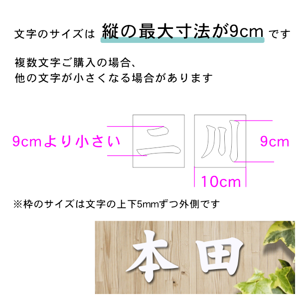 ※複数文字ご購入の場合、一番縦幅が大きいサイズが9cmになります。