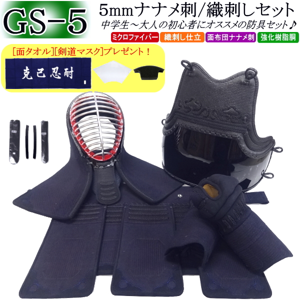 剣道 防具 セット / [GS-5] 5mmナナメ刺 刺繍無料! 送料無料[北海道・沖縄県除く] 【剣道防具 剣道防具セット 剣道具 小手】