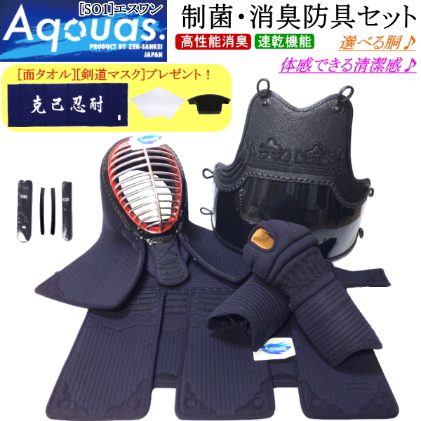 剣道 防具 セット / [Aquas/SO1] 制菌・消臭防具セット 刺繍無料! 送料無料[北海道・沖縄県除く]【アクアス 剣道防具セット 剣道具 小手】