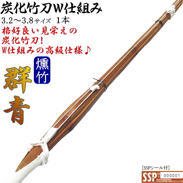 竹刀 / 炭化《群青》W床柄仕組み!! 3.2〜3.8 [1本] 送料無料![北海道・沖縄県除く] [SSPシール付][新基準対応]【剣道具 剣道 竹刀 完成品 燻製 燻竹】