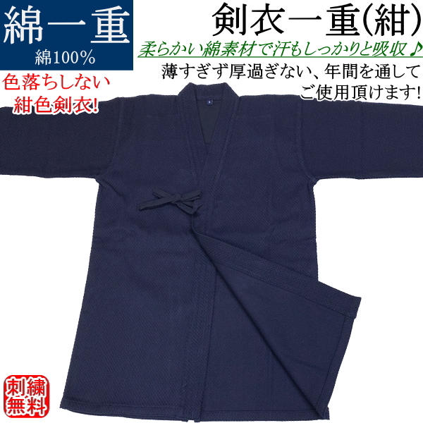 剣道着 / 剣衣一重(紺) 綿100% 刺繍無料!送料無料[北海道・沖縄県除く]【紬 剣道衣 剣道具 涼しい】