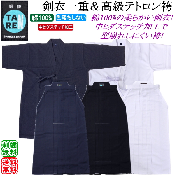 剣道着 セット / 剣衣一重(紺)(白)&[鍛錬]高級テトロン袴《中ヒダステッチ加工》(紺)(白)(黒) 上下セット 刺繍無料!送料無料[北海道・沖縄県除く]