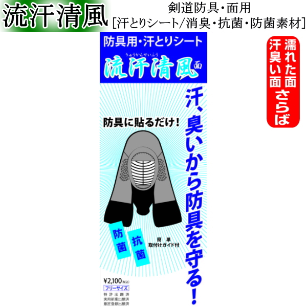 流汗清風/面用 [汗とりシート/消臭・抗菌・防菌素材] 【剣道 剣道具 面用】