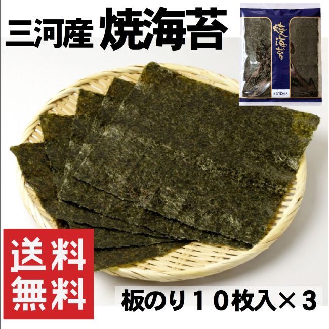 海苔 焼き海苔 のり 10枚×3袋 全型30枚入 三河産 メール便送料無料 おにぎり 巻き寿司