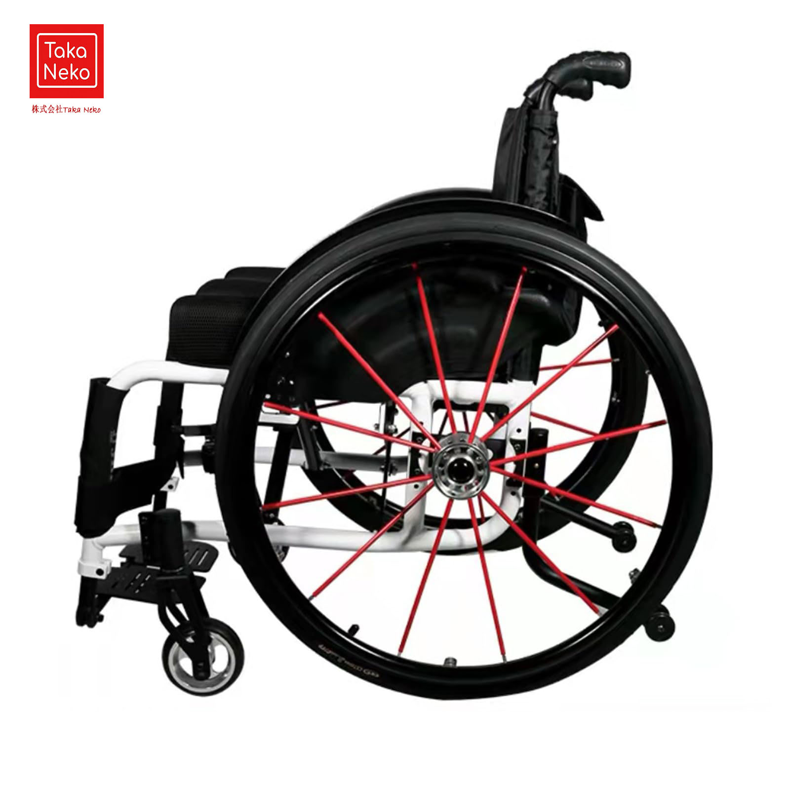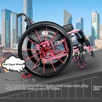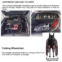 折りたたみスポーツ車椅子:折りたたみフレームにより、保管や持ち運びに便利です。使用しないときは折りたたんで車のトランクやクローゼットに保管するだけです。旅行やコンパクトなスペースに最適です。
