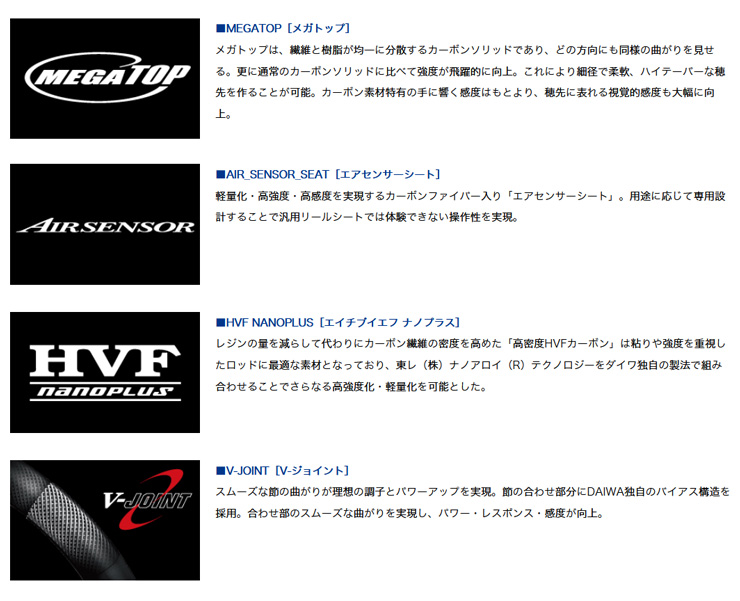 ・ダイワタイラバロッドの代名詞 メガトップ採用のスリルゲームブランク(TGモデル)。