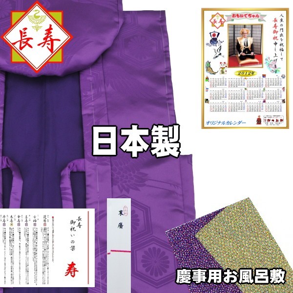 傘寿 祝着 セット: 傘寿 祝着 ・ 傘寿 大黒頭巾・ 傘寿 祝扇子・ 傘寿 御祝の栞・超豪華化粧箱・風呂敷・長寿おもいでちゃん・縁起のいい豪華包装紙