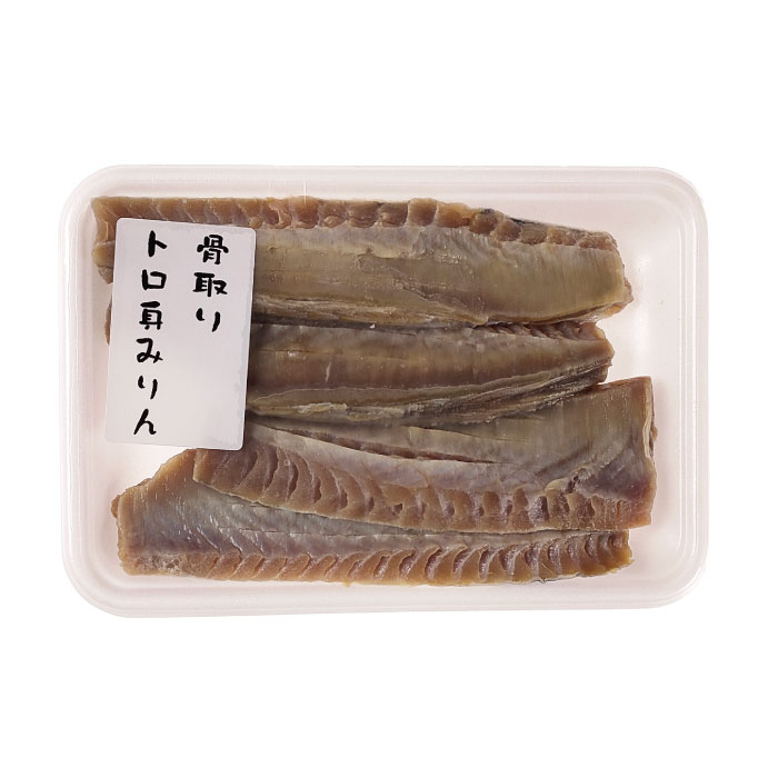 鰹の一番おいしいトロ身の部分のヒレ・骨を除去し、みりん醤油等で味付けしほどよく乾燥しました。