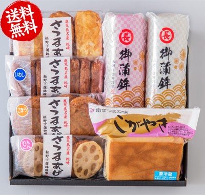 さつま揚げ:魚肉・種物(さつま芋・れんこん・ごぼう)・とうふ・砂糖・でん粉・発酵調味料・菜種油・酒(地酒100%(鹿児島製造)・ぶどう糖・食塩・加工でん粉・調味料(アミノ酸等)