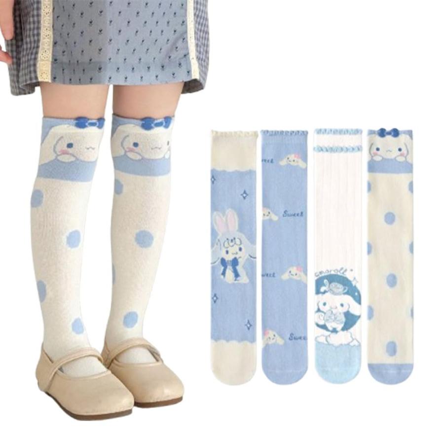 シナモン クロミ キッズ ガーリー ハイソックス 4足組 ポチャッコ 男の子 可愛い柄靴下 女の子 ガールズ キッズ ニーハイソックス 踵なし 室内 入学式 卒業式