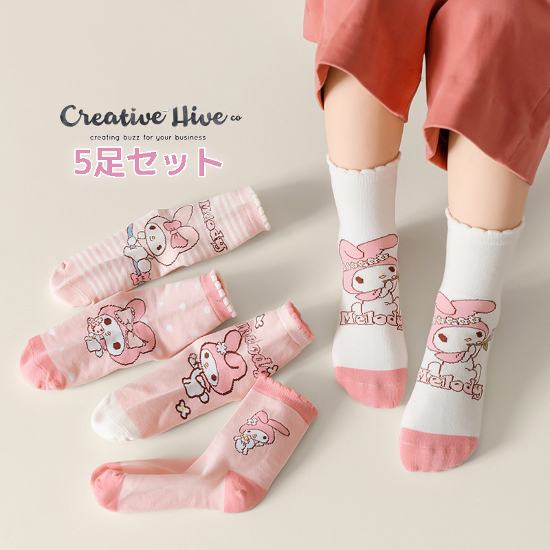 5足組 ソックス 子供ソックス 靴下 シナモロ クロミ マイメロ ポムポムプリン セット 脱げない靴下 綿 柔らかい 抗菌 防寒 室内 防臭 通気性 ソックス 可愛い