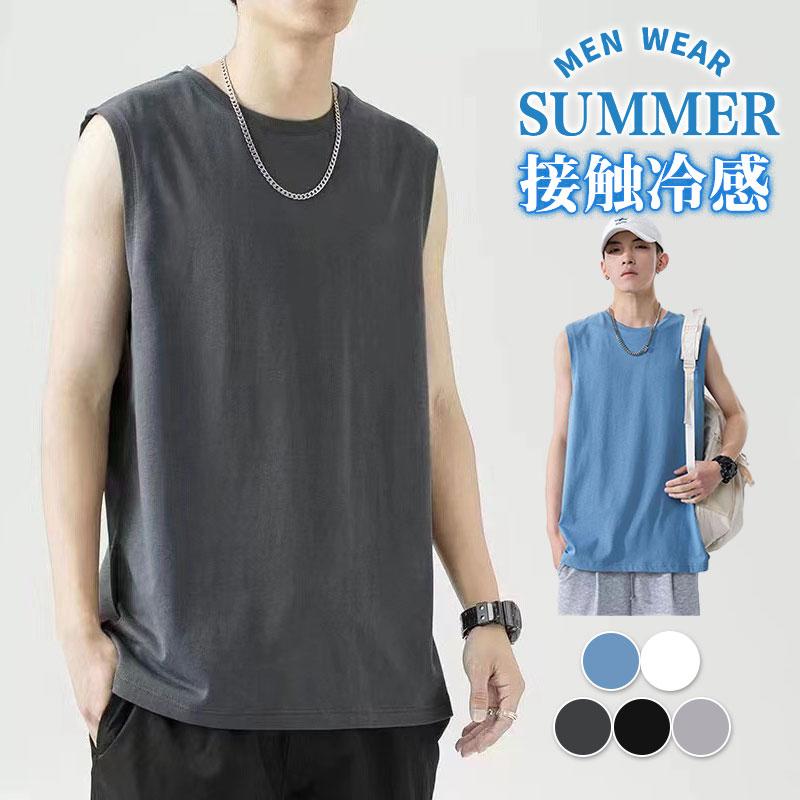 爆買 【2点購入で200円OFF!】タンクトップ メンズ インナー トップス ノースリーブ 学生 ひんやり 涼しい Tシャツ 接触冷感 Vネック 快適 無地 夏 冷感 肌着