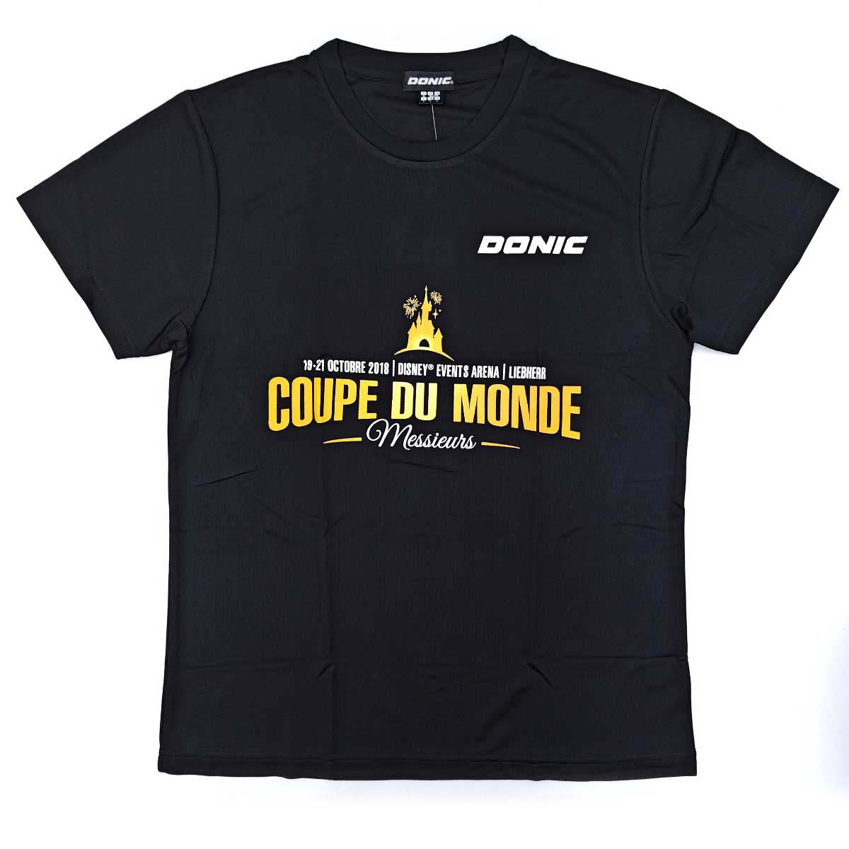 【中古・未使用品】ドニック 卓球 2018 ワールドカップ パリ フランス 記念 ドライシャツ プラシャツ Tシャツ L ブラック ユニセックス DONIC