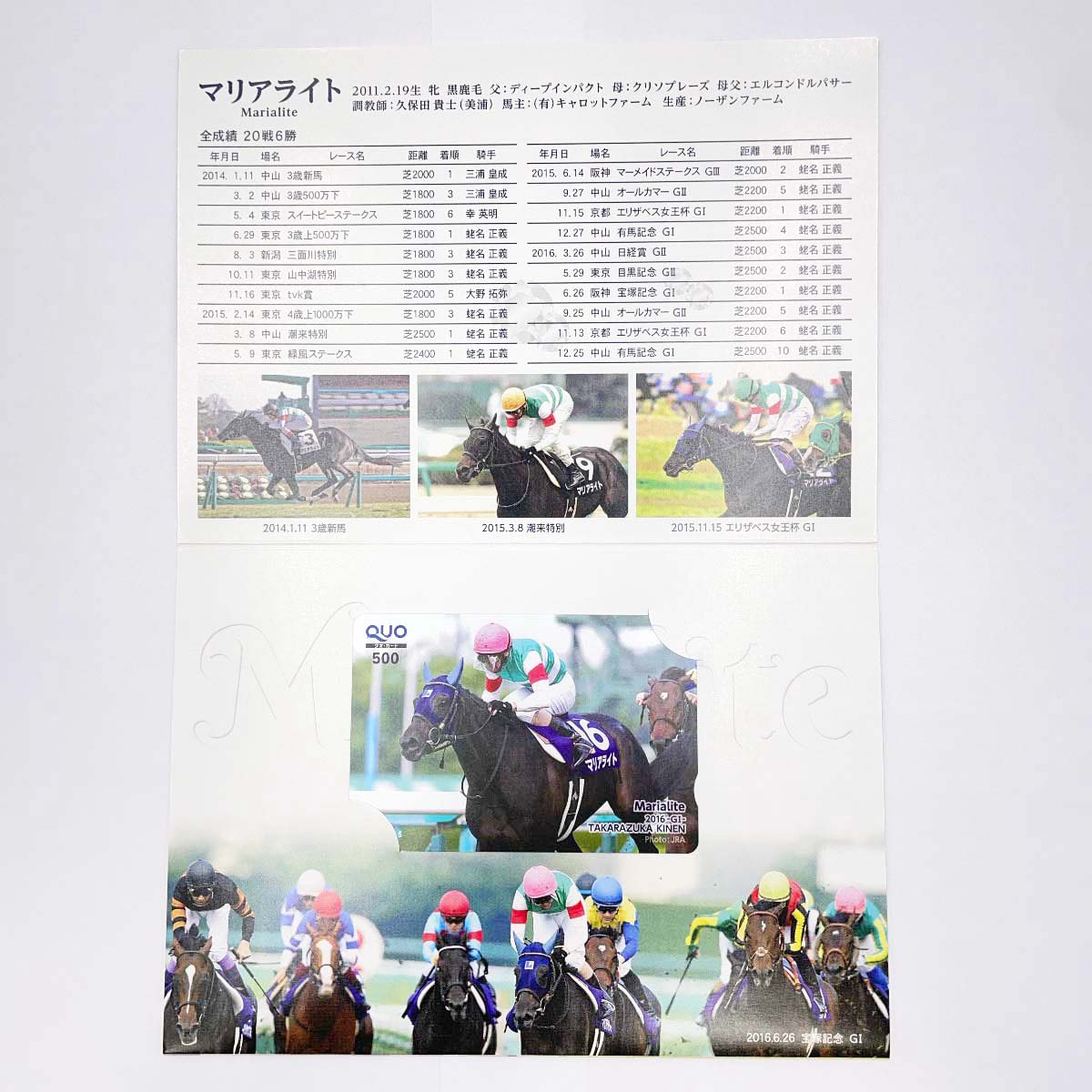 【中古・未使用品】PRC FOREVER QUOカード クオカード マリアライト 500円分 引退記念 台紙つき 競馬 JRA