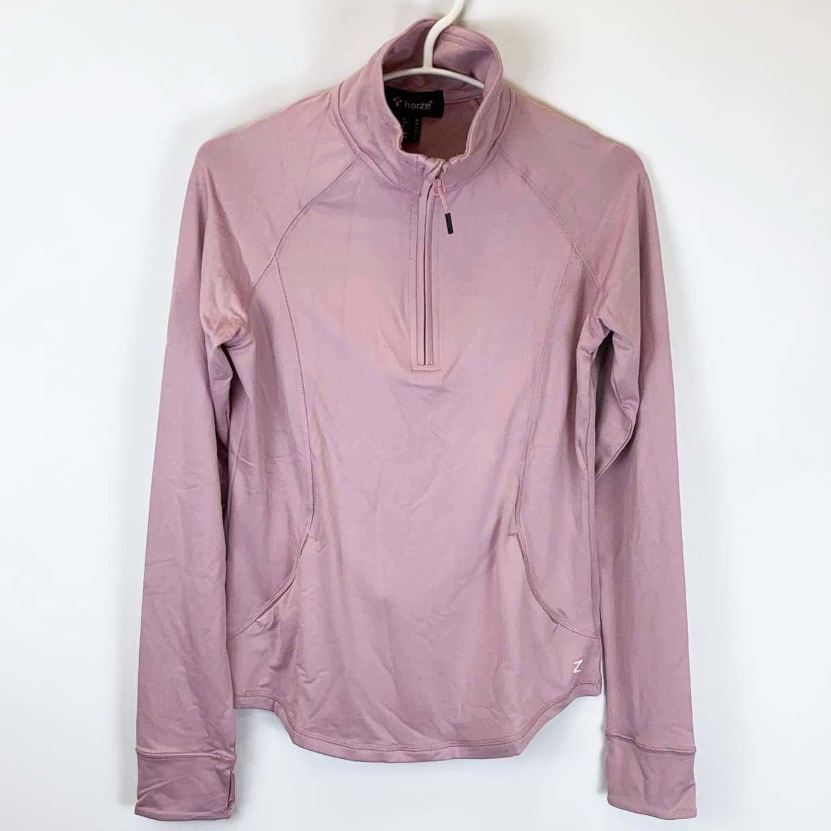 【仕様】 ブランド:ホルツ Horze タイプ:ANDIE ハーフジップ ストレッチ 長袖 ライディング トレーニングシャツ 表記サイズ:38 対象:レディース 型番:33086 カラー:ライトピンク 身幅:約45cm 着丈:約63cm 裄丈:約90cm
