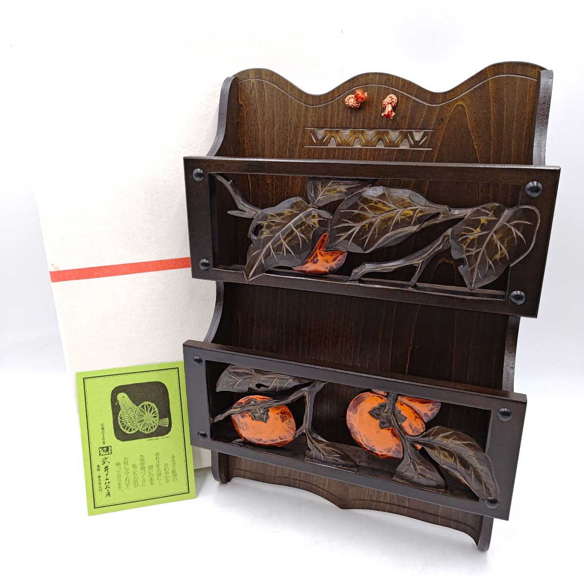 【中古・未使用品】信濃民芸品 農美 長野武井工芸店 木彫 柿 レターケース 手紙