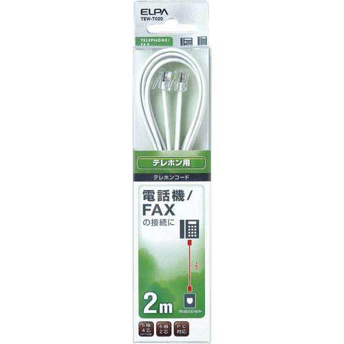 ★商品合計金額3000円(税込)以上送料無料★テレフォンコンセントと電話機の接続に(両端モジュラープラグ)。6極4芯のNTT仕様のホームテレホン、ビジネスホンに使用可能。6極2芯の一般電話機、留守番電話機、FAX等のコードとしても使用可能です。●寸法/コード長さ:2m●付属品/なし●保証期間/なし●その他仕様/モジュラープラグ⇔モジュラープラグ●その他仕様/パソコン通信対応●単位/1本●メーカー品番/TEW−T020