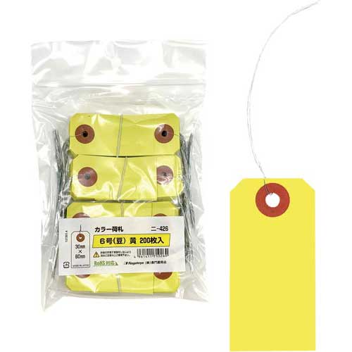 長門屋商店 カラー荷札 黄 6号 豆 200枚