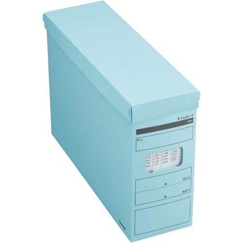 ★商品合計金額3000円(税込)以上送料無料★保存期間が3年のタイムカードを便利に管理できるボックス。蓋付きなので2段まで積み重ねての保管もできる。●カラー/ブルー●寸法/外寸:幅97×奥行317×高さ216mm(フタをかぶせた状態)、内寸:幅93×奥行313×高さ212mm●材質/色厚板紙●付属品/仕切板:3セット、インデックスシート:12枚●単位/1個●メーカー品番/4118−5377