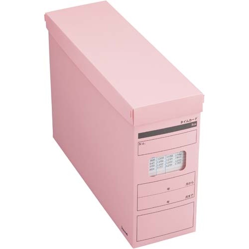 ★商品合計金額3000円(税込)以上送料無料★保存期間が3年のタイムカードを便利に管理できるボックス。蓋付きなので2段まで積み重ねての保管もできる。●カラー/ピンク●寸法/外寸:幅97×奥行317×高さ216mm(フタをかぶせた状態)、内寸:幅93×奥行313×高さ212mm●材質/色厚板紙●付属品/仕切板:3セット、インデックスシート:12枚●単位/1個●メーカー品番/4118−5384
