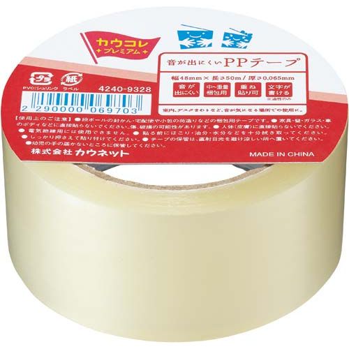 カウネット 「カウコレ」プレミアム 音が出にくいPPテープ 厚手 50m巻 1巻