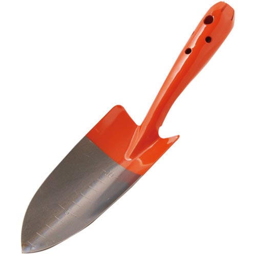 ★商品合計金額3000円(税込)以上送料無料★ガーデニングの必需品。植物の植替え作業、掘り起し、球根植え作業等に。補強付で強度もあります。土に刺す部分に目盛付で便利です。●寸法/(約)全長280X幅75X奥行45mm●質量/188g●材質/スチール●カラー/オレンジ●仕様/板厚1.2mm補強付すくい部目盛付●単位/1個●メーカー品番/720006※本来の用途以外に使用しないで下さい。