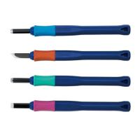 ★商品合計金額3000円(税込)以上送料無料★ラバーグリップのため滑りにくく、手にフィットします。良質の鋼材を使用した刃は、全体に焼き入れをしているので、鋭い切れ味で彫りやすく、強靭で曲がりにくいです。名前シール付きです。●仕様/4本セット●セット内容/丸刀大・切り出し・三角刀・平刀●単位/1個(4本入)●メーカー品番/EHT−4A※刃先に注意してご使用下さい。