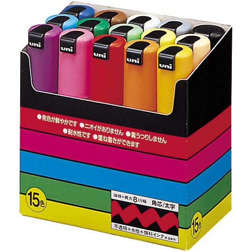三菱鉛筆 水性マーカー ポスカ 太字 15色セット
