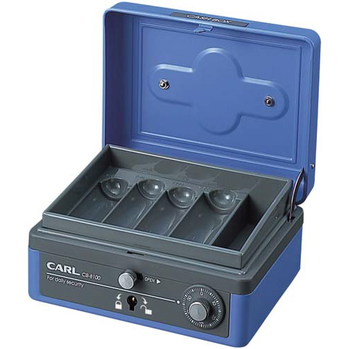 ★商品合計金額3000円(税込)以上送料無料★トレーの下は、領収書や伝票を収納できるフリースペース。●外寸法/幅152×奥行129×高さ83mm●内寸法/幅132×奥行97×高さ23mm●カラー/ブルー●質量/640g●ダイヤル錠、錠前、コイントレー●付属品/鍵2個付●単位/1台●メーカー品番/CB−8100−B※内寸はトレーが入った状態での底面までの有効寸法となります。