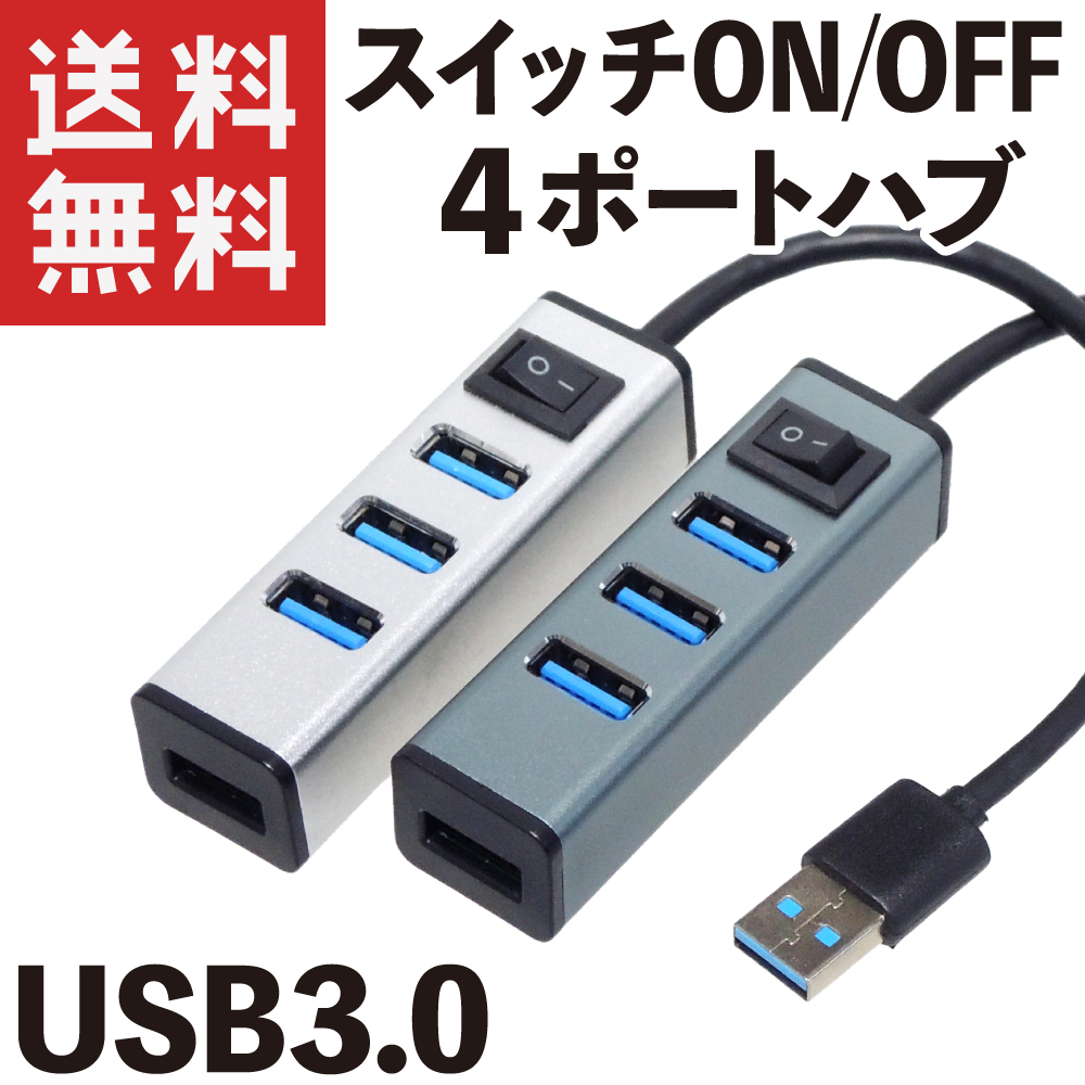 USB ハブ 4ポート USB3.0 スイッチON/OFF アルミ合金筐体