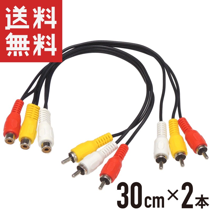 2分岐AVケーブル RCA赤白黄(3ピンオス)×2 ー RCA赤白黄(3ピンメス) 30cm