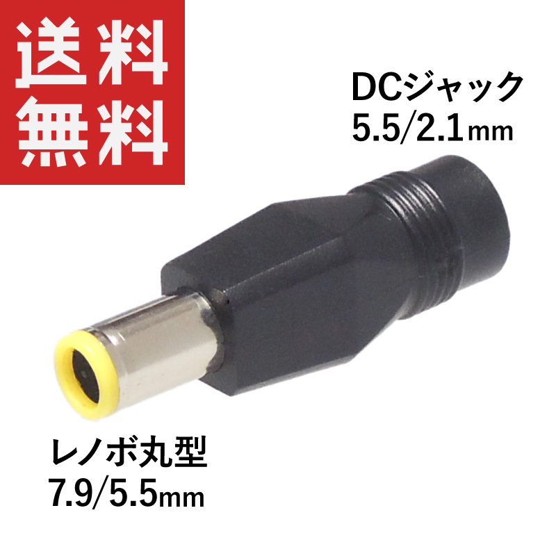 ACアダプター変換 DC(メス5.5/2.1mm) → 丸型(オス7.9/5.5mm) レノボ/Lenovo/ThinkPad/NEC