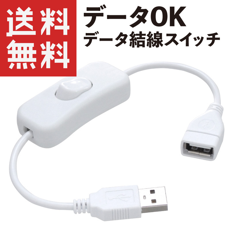 USBスイッチ Type-A USB-A (iPhone充電対応/スマホ急速充電対応18W/USB2.0データ通信対応) 28cm (ホワイト)