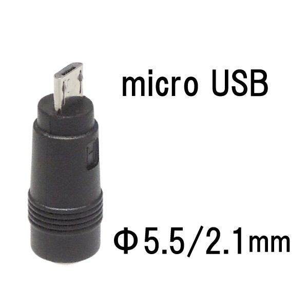 DCプラグ変換アダプタ φ5.5/2.1mm → micro USB に変換