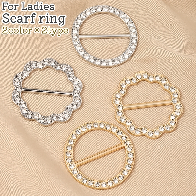 スカーフリング スカーフ留め 留め具 レディース 女性 婦人 アクセサリー 円形 丸型 花型 ラウンド ラインストーン シルバーカラー ゴールドカラー