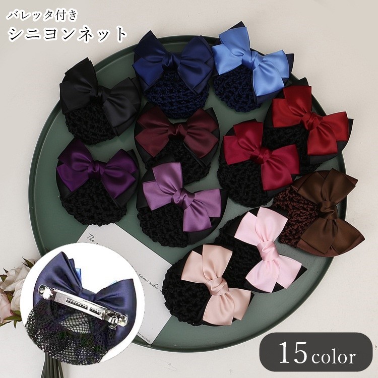 リボンのバレッタ付きシニヨンネット。